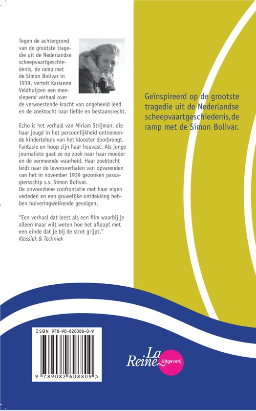 Echo is het verhaal van Miriam Strijman,die opgroeit in het persoonlijkheid ontnemende kindertehuis van het klooster. Fantasie en hoop zijn haar houvast. Als jonge journaliste gaat zij in het geheim op zoek naar haar moeder en de waarheid. Haar zoektocht leidt naar de opvarenden van het in november 1939 gezonken passagiersschip de Simon Bolivar.